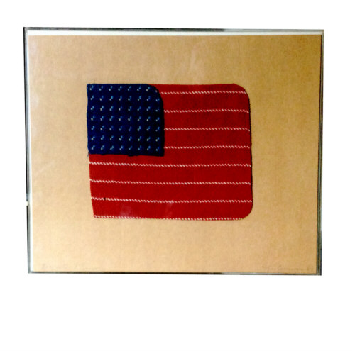 Montage, kartong, tygprover, boxram plexi, signerad 1984 - Igor Cronsioe